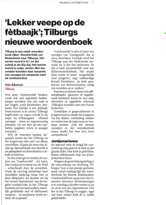 Tilburg krijgt eigen woordenboek: ‘Goedvertòld’ | Erfgoed Tilburg