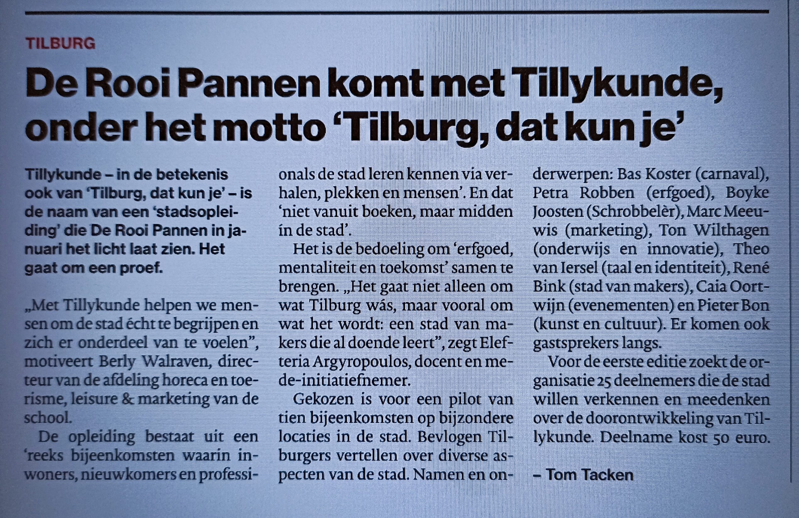 De Tilburgse Taol zal onderdeel uitmaken van de nieuwe cursus van De Rooi Pannen: Tillykunde.
